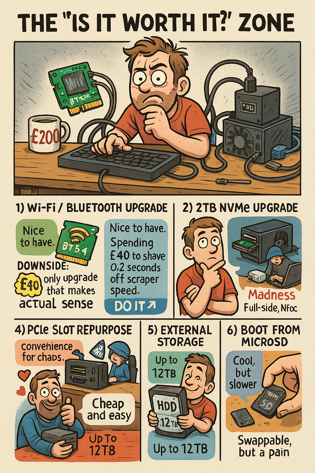 So before you go turning your budget box into a black hole for savings, let’s look at the upgrades and what sort of madness you’re getting into.